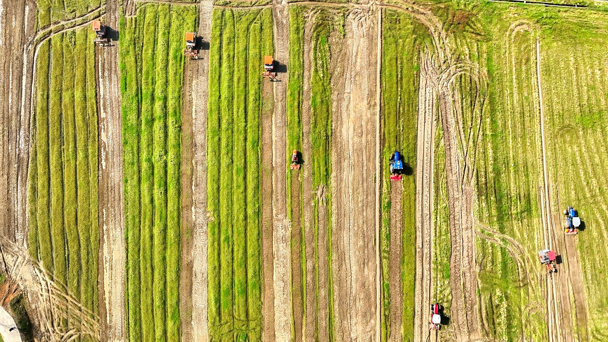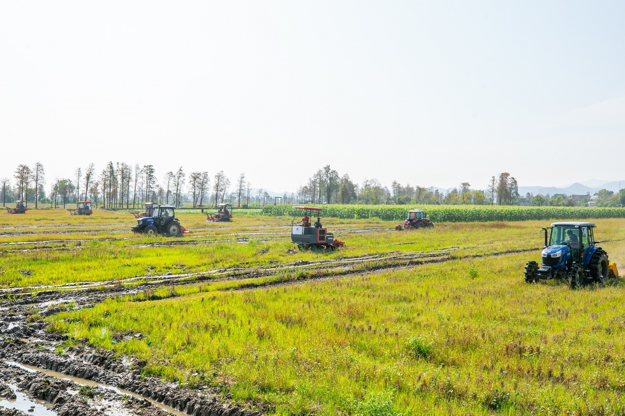 在江门台山,多台旋耕机一同功课。
