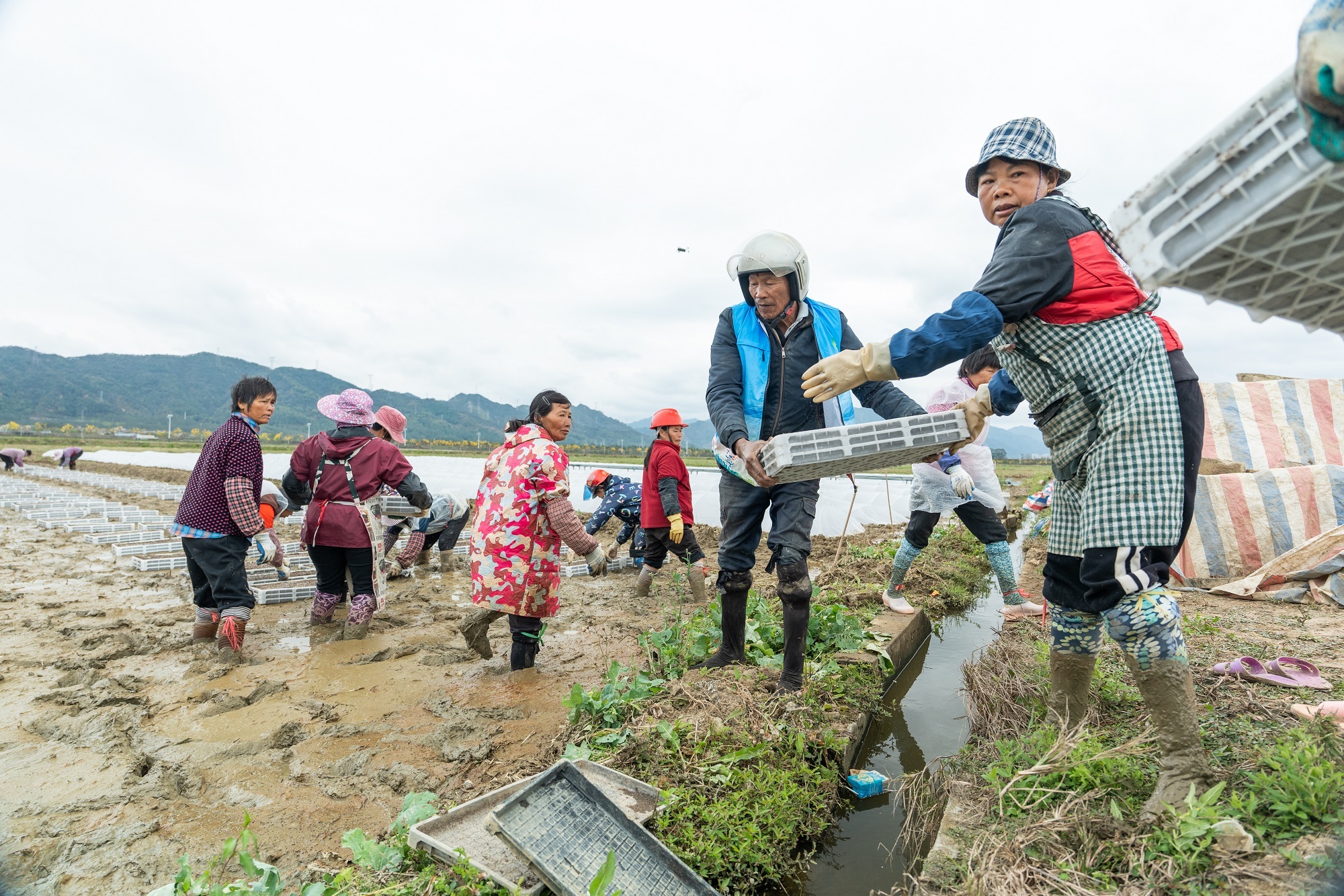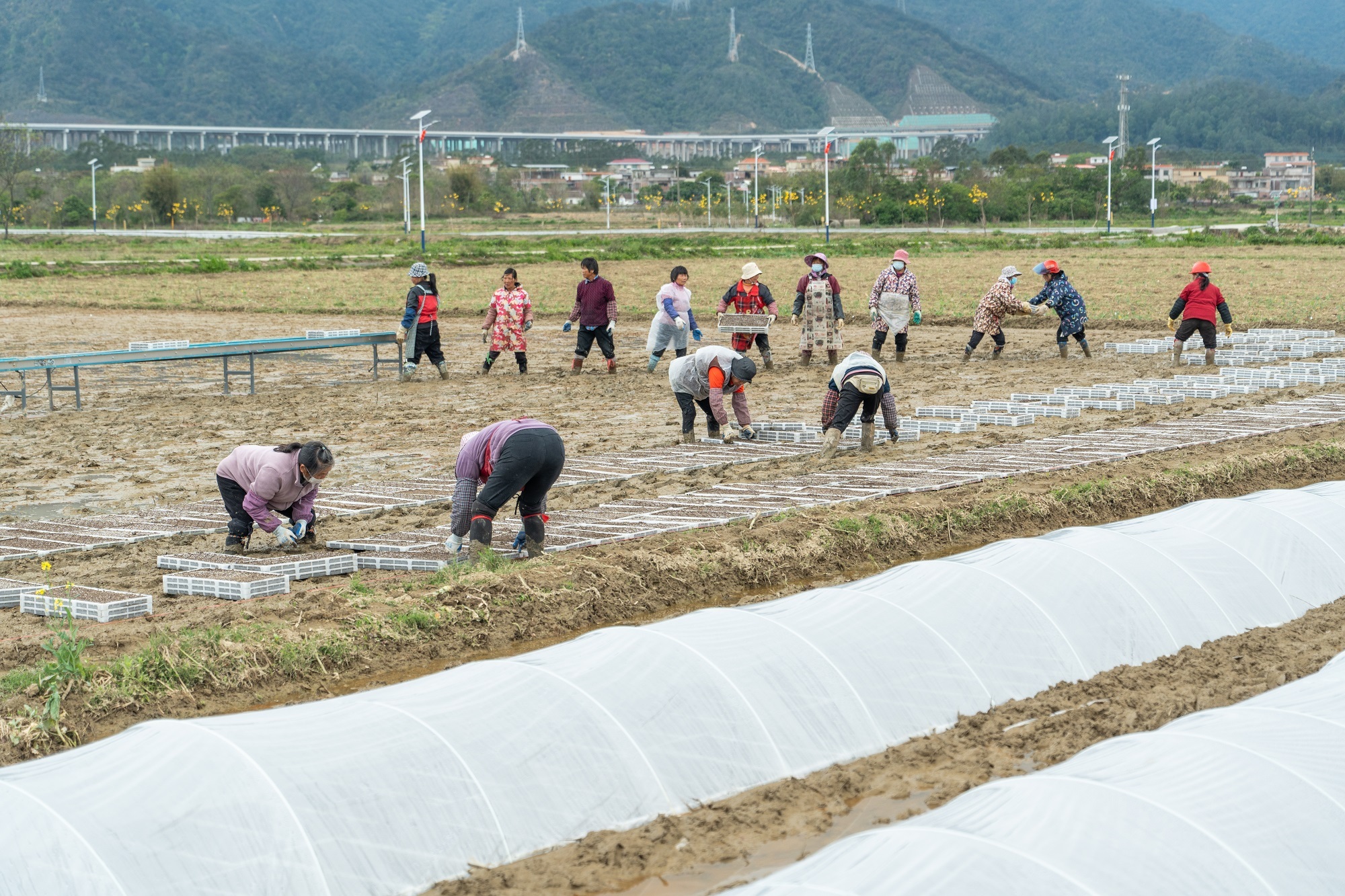 在清远,农户们正开展病笃的育秧职责。