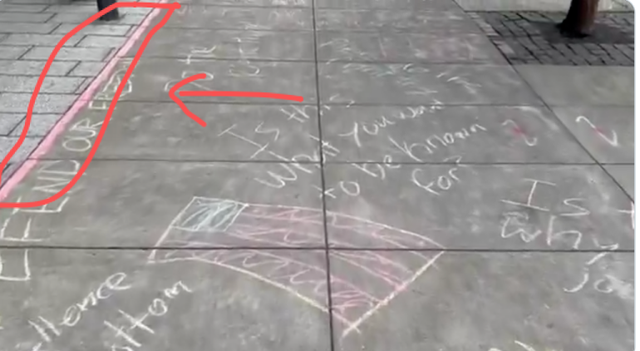 最具记号性的,是有东说念主在东说念主行说念上画上长长的“红线”,围住总部建筑,意指DoW(宣战部)和Anthropic之间的争议中枢。