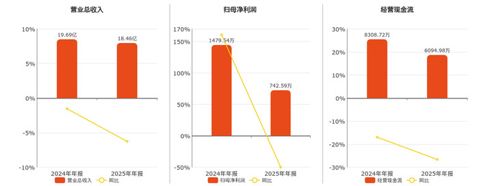 公司交易总收入为18.46亿元,在已流露的同行公司中排行第18,较旧年同敷陈期交易总收入减少1.23亿元,同相比旧年同时下落6.27%。归母净利润为742.59万元,在已流露的同行公司中排行第12,较旧年同敷陈期归母净利润减少736.95万元,同相比旧年同时下落49.81%。酌量算作现款净流入为6094.98万元,在已流露的同行公司中排行第15,较旧年同敷陈期酌量算作现款净流入减少2213.74万元,同相比旧年同时下落26.64%。