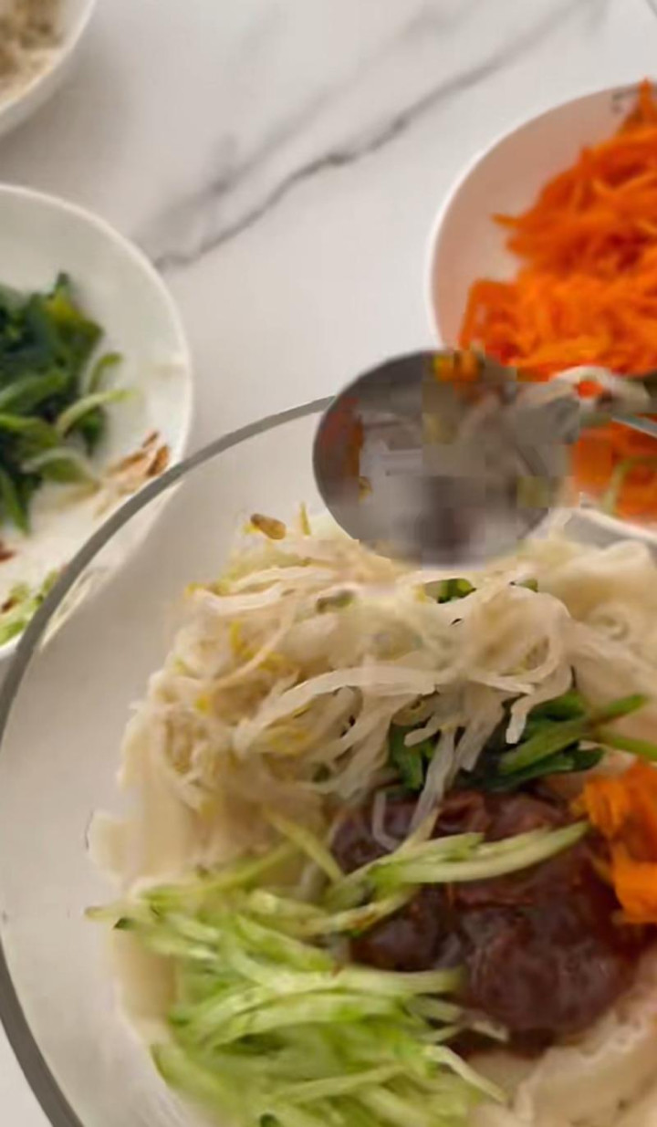 高云翔在宽面中翻入了黄豆酱、豆芽、胡萝卜丝等菜码子,看起来色香味俱全。高云翔还亲自为父亲现场用筷子和盘子伴奏,唱了生日歌。