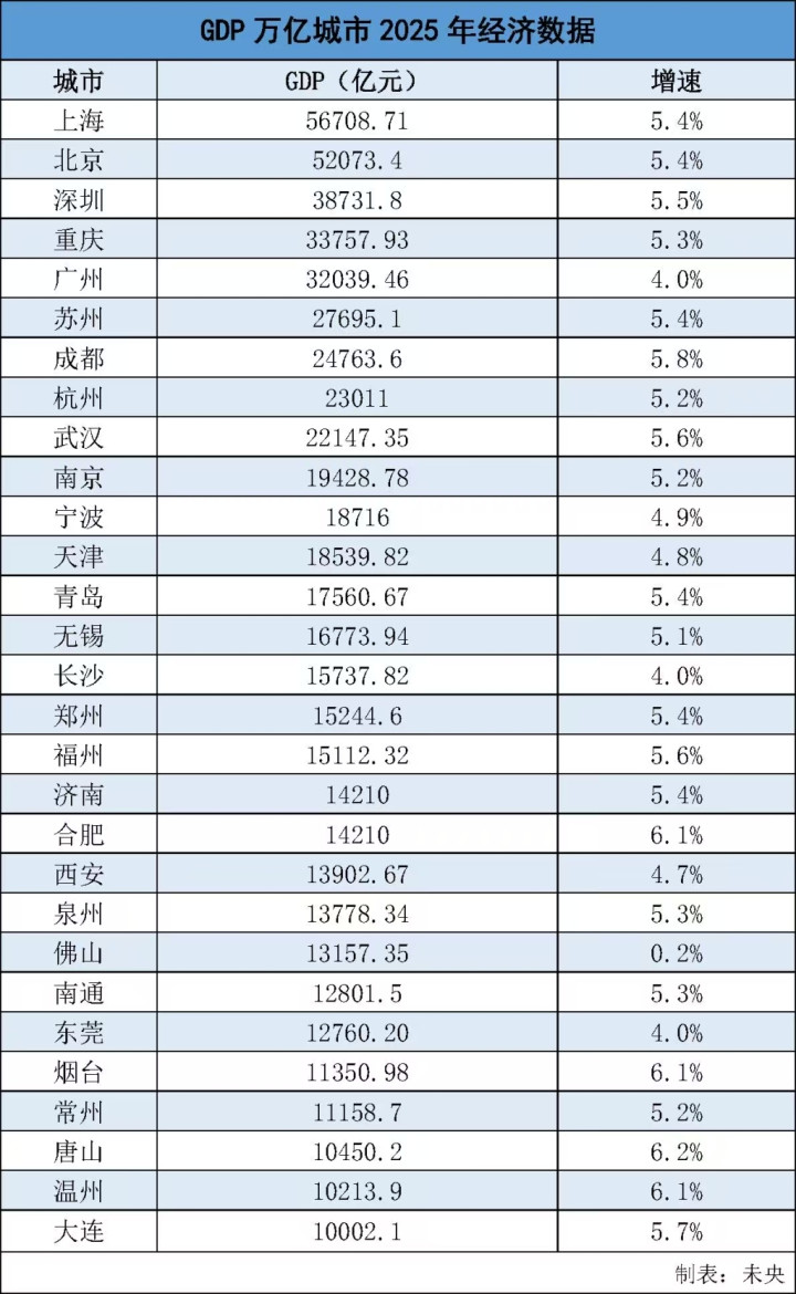 “万亿城市”泛指年度GDP首先1万亿元的所有城市。跟着2025年中国大陆这一集群的成员增多到29个,“万亿”仍是城市能级的一说念分水岭,但各地本年的政府责任叙述以及“十五五”筹画建议线路,越来越多的经济强市已将发展标杆抬升到了“2万亿”。