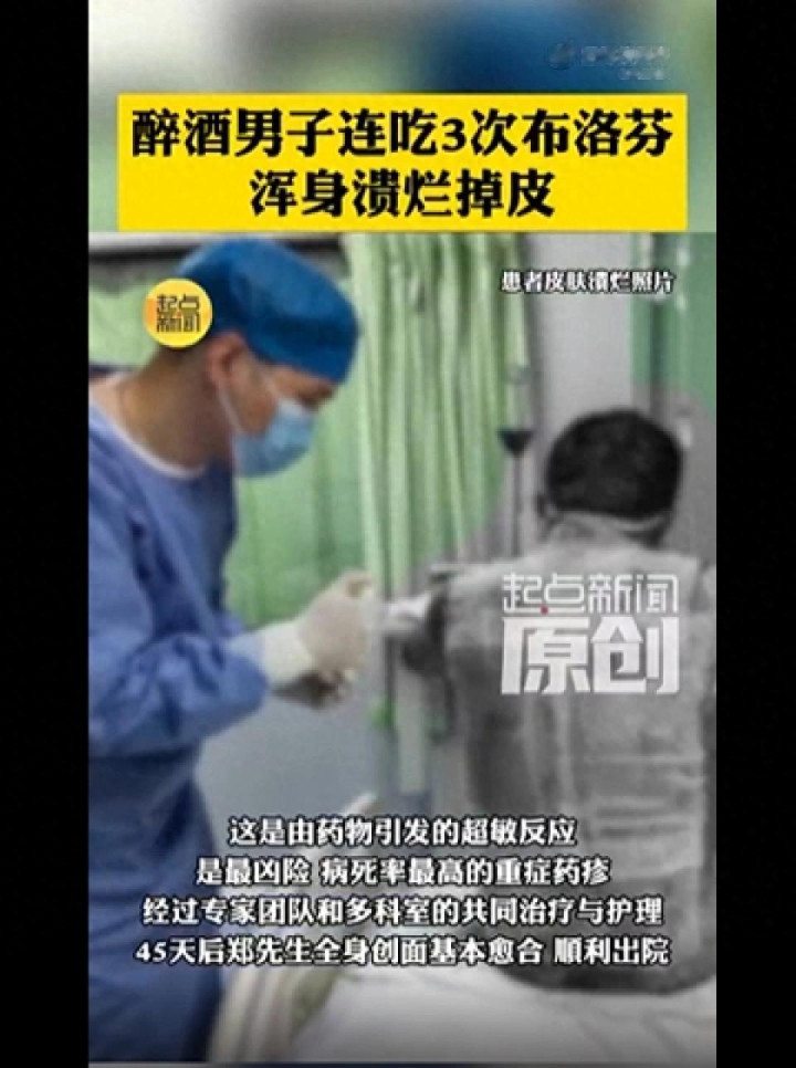 米兰体彩 男人酒后面痛连吃3次布洛芬, 全身溃烂确诊重症药疹
