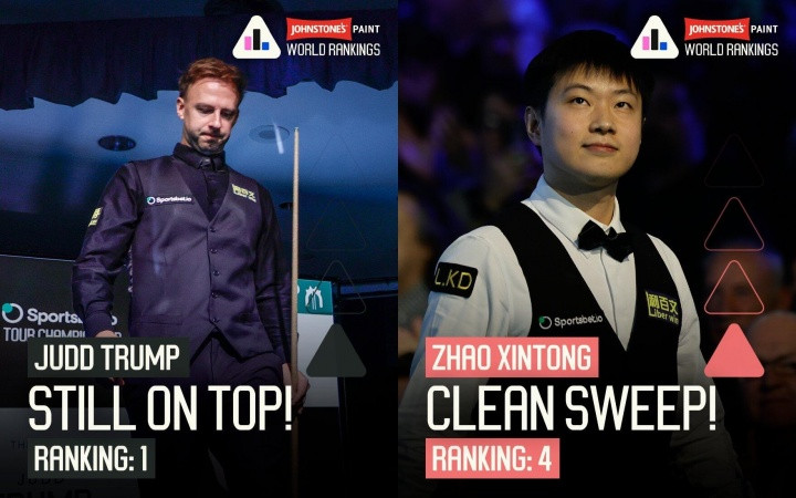 WST官网厚爱更新寰宇名次,赵心童名次上涨一位,初度厚爱置身寰宇前四!赵心童的的奖金积分达到1,126,550镑,寰宇第一特鲁姆普的奖金积分是1,675,550镑,出入54.9万镑。