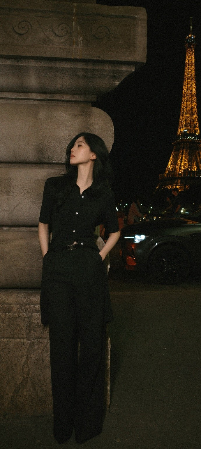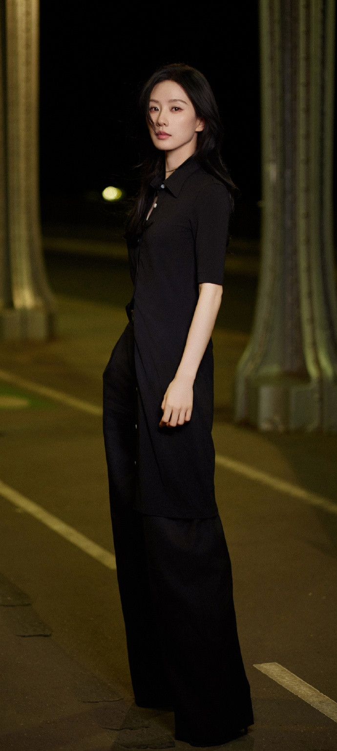 黑色短袖衬衫搭配高腰阔腿裤,刘诗诗这款穿搭用最克制的黑色单品,演绎出最动人的高级感,完美诠释了什么叫“少即是多”。