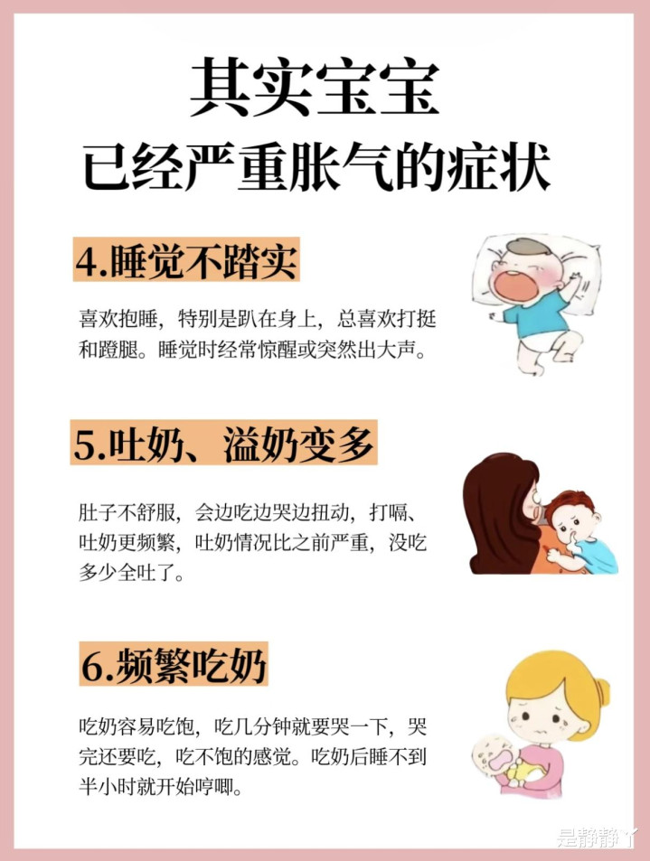 宝宝肠胀气时,庸碌会阐明出一些显然的症状。比如,宝宝的肚子摸起来硬硬的,像个小皮球,随机还能听到咕噜咕噜的肠鸣音。宝宝可能会每每放屁,以至放屁时会带出少许便便。此外,宝宝还可能出现腹部绞痛的阐明,比如瑟索体魄、脸憋得通红、不断地哭闹、蹬腿或扭动体魄。有些宝宝睡眠也不褂讪,心爱被抱着睡,尤其是趴在大东说念主身上时会舒坦一些,但稍稍放下就容易惊醒或一刹大哭。还有的宝宝会每每吐奶、溢奶,简略吃奶时吃几口就哭,吃完没多久又显得饿了,以至吃奶后半小时就开动哼唧。