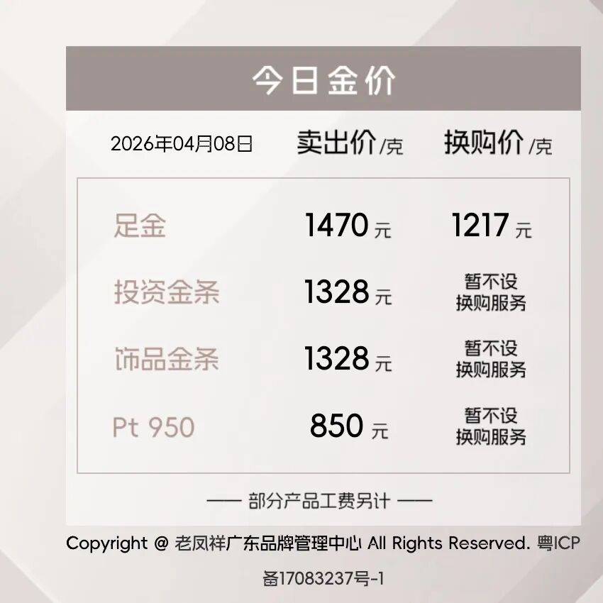 当日,老凤祥足金饰品价钱由前一日的1435元/克上调至1470元/克,高涨35元。